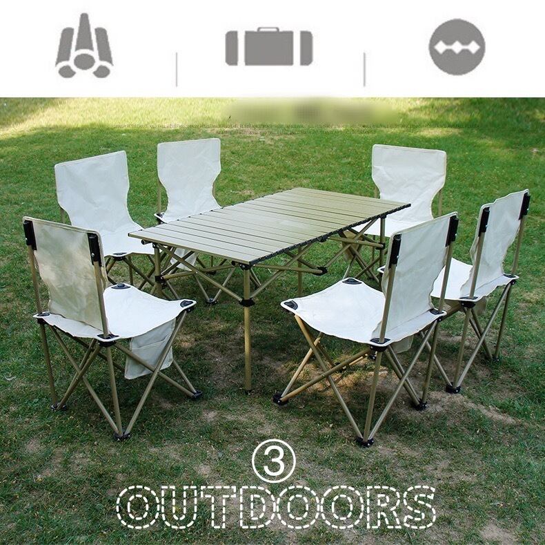 アウトドア 折りたたみテーブル ロールテーブル 簡単組立 コンパクト 収納バッグ付 バーベキュ シリーズ35 120cm/黒イス7点セット