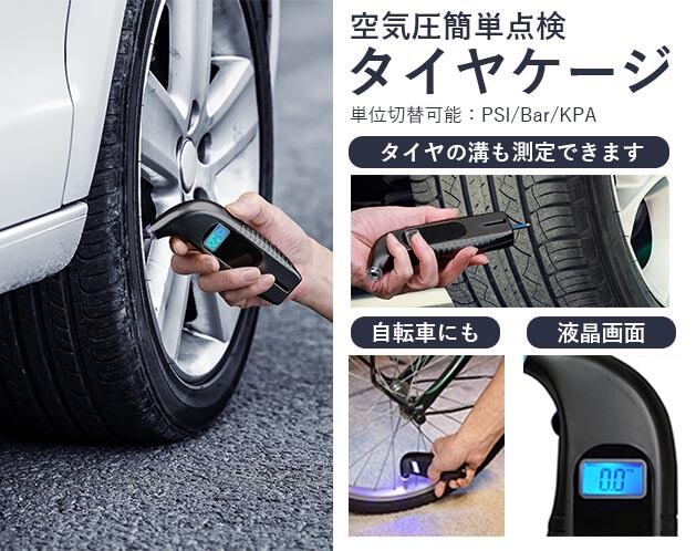 液晶に空気圧の数値が出ます。 (測定値:0~150PSI、0~10Bar、0~1034KPA、0~150Psi)