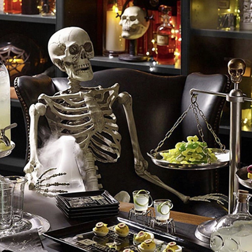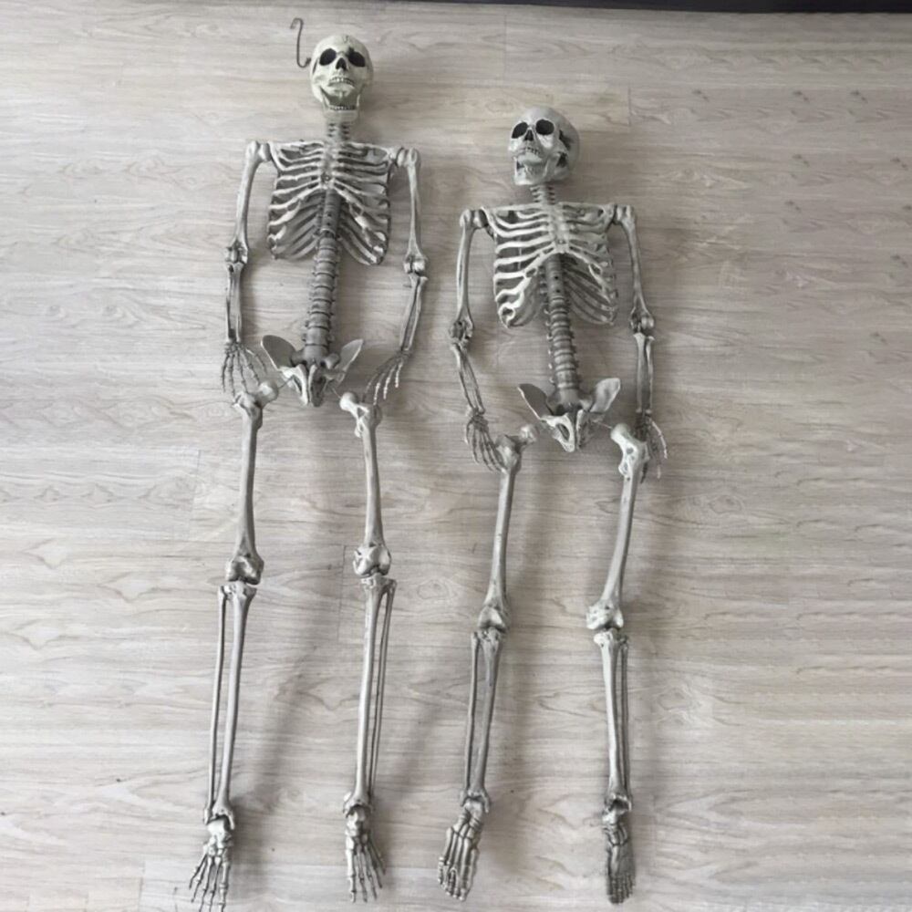 吊り下げ用のフックが頭に付いているのでそこに引っ掛けて吊り下げてお使いください*顎を動かしてカタカタできます*指以外の全ての関節を動かすことができますのでご自由にポーズを取らせることができます怖いオバケ屋敷シーンを演出したい時に、天井からこちらの商品がぶら下がってるとシーンが盛り上がること間違いなし!骸骨を等身大リアルサイズで再現した恐ろしい人形ですプラスチックできているので、軽量で吊り下げやすいです!大きくて存在感あるのに、素材が軽いから画鋲などで簡単にディスプレイできるのも魅力です明るいところで見てもリアルな作りで恐ろしい!ひとたび照明を落とすと一気に迫力が増して、恐怖のシーンをそこに運んできてくれます!悪魔のテーブルで晩餐を楽しみたい。そんな人に死神からの招待状です!こちらの骸骨は本物と見間違えてしまうほどリアルに作られていて、かなりインパクト大。天井から吊り下げればその迫力でイベントやパーティーで大人気になります!他のパーティーグッズなどと組み合わせれば格段上の盛り上がりが期待できるでしょう!インパクトのあるリアルなデザインのガイコツなので周りの視線を一瞬でさらいますよ! ゴシック系やヨーロッパ、北欧系のインテリアと一緒に飾れば場も盛り上がるでしょう。壁や天井に吊り下げるだけですのでセッティングが簡単なのも魅力ですねおばけ屋敷、舞台や演劇、映画撮影や職場の宴会やパーティーなどの余興用に準備したい人におすすめですパーティーシーズン用に1つあると、皆で使えて重宝するでしょう。迫力のある骸骨ドールで会場の注目を集めたい人は、ぜひチェックしてみてください素材はプラスチックですが目の前に本当にいるのかと恐れてしまうほどリアル!インパクトある作り!各種イベント、パーティーで部屋がおしゃれに大変身!大活躍、盛り上げてくれること間違いなし
