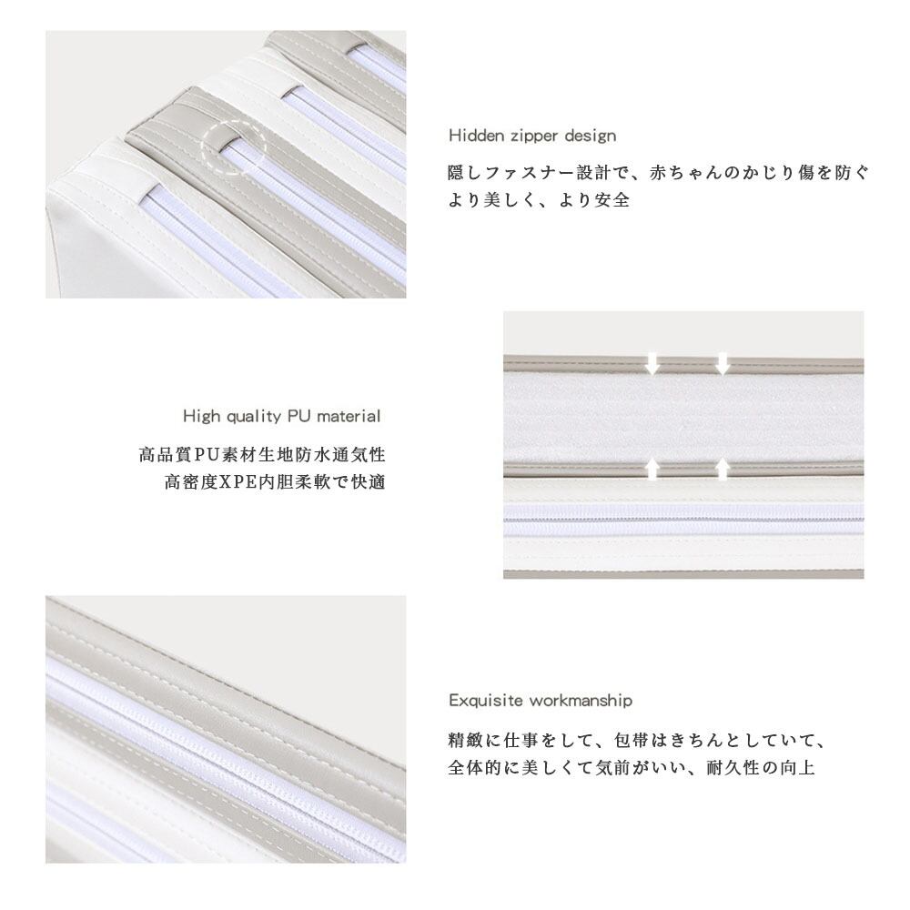 【4つ折りシームレス仕様】 マットの継ぎ目の溝が床面になり、表面にすき間(溝)がないので、食べ物や飲み物をこぼしても溝に溜まることなく衛生的です。また、すき間に赤ちゃんの足や手がはさまる心配もなく、安全性も従来品よりも向上しました。