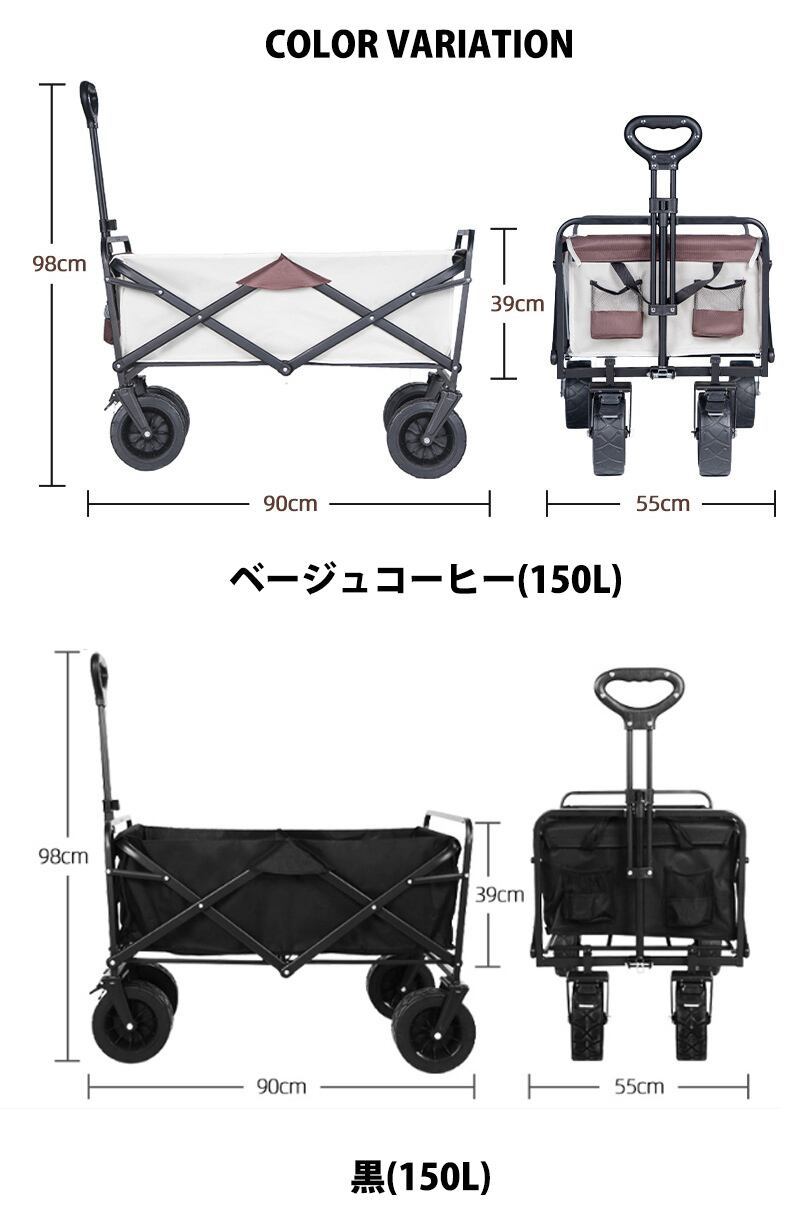 キャリーワゴン アウトドアワゴン 折りたたみ キャンプワゴン キャリーカート 150L 軽量 コンパクト