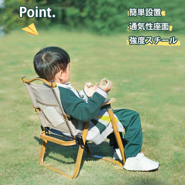 キッズチェア アウトドア 折りたたみ椅子 ポータブル 軽量 チェア キャンプ ウッド調 コンパクト